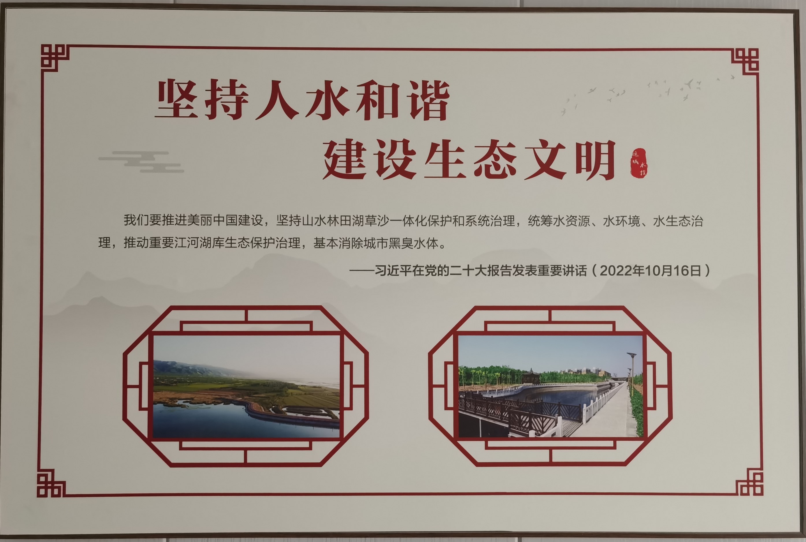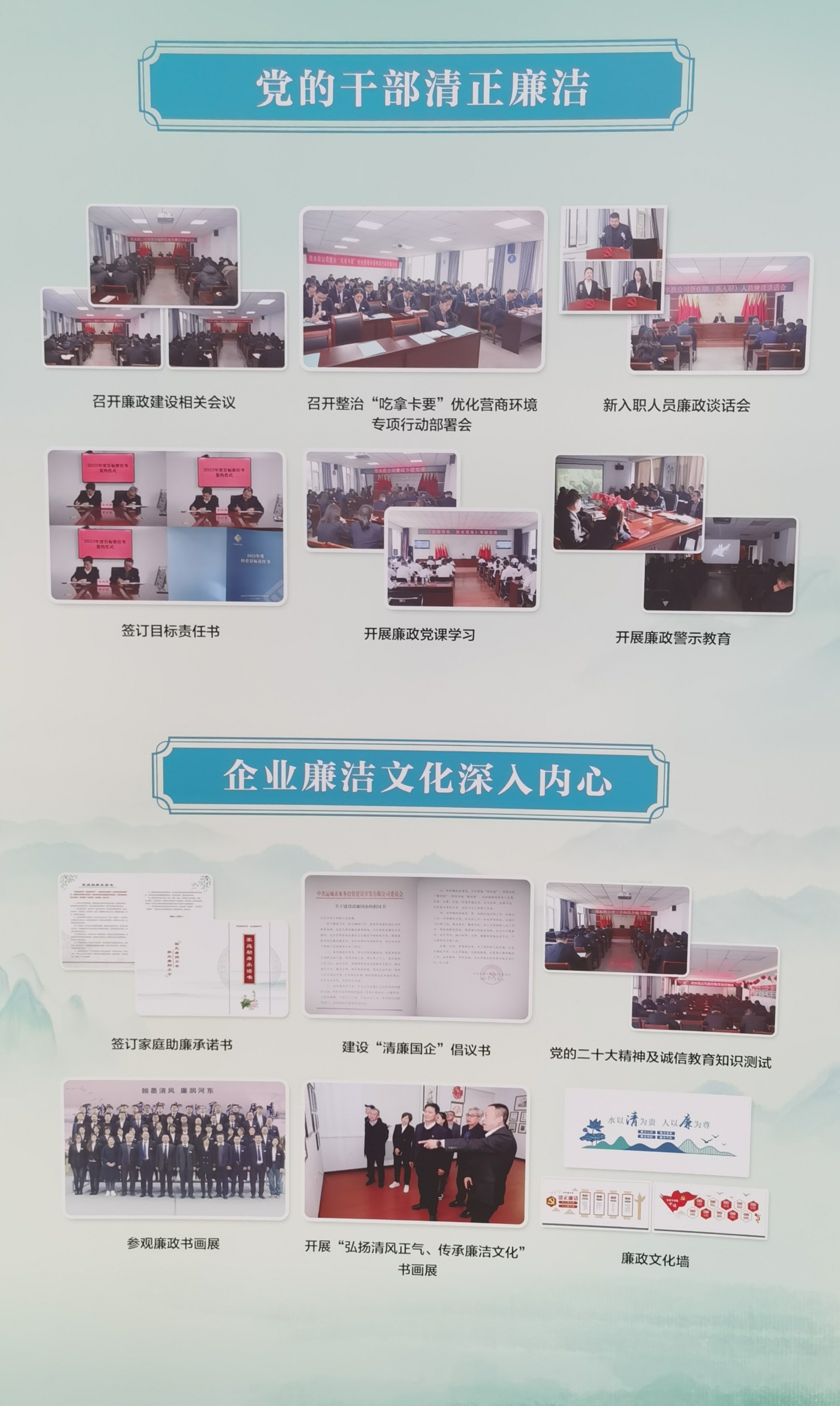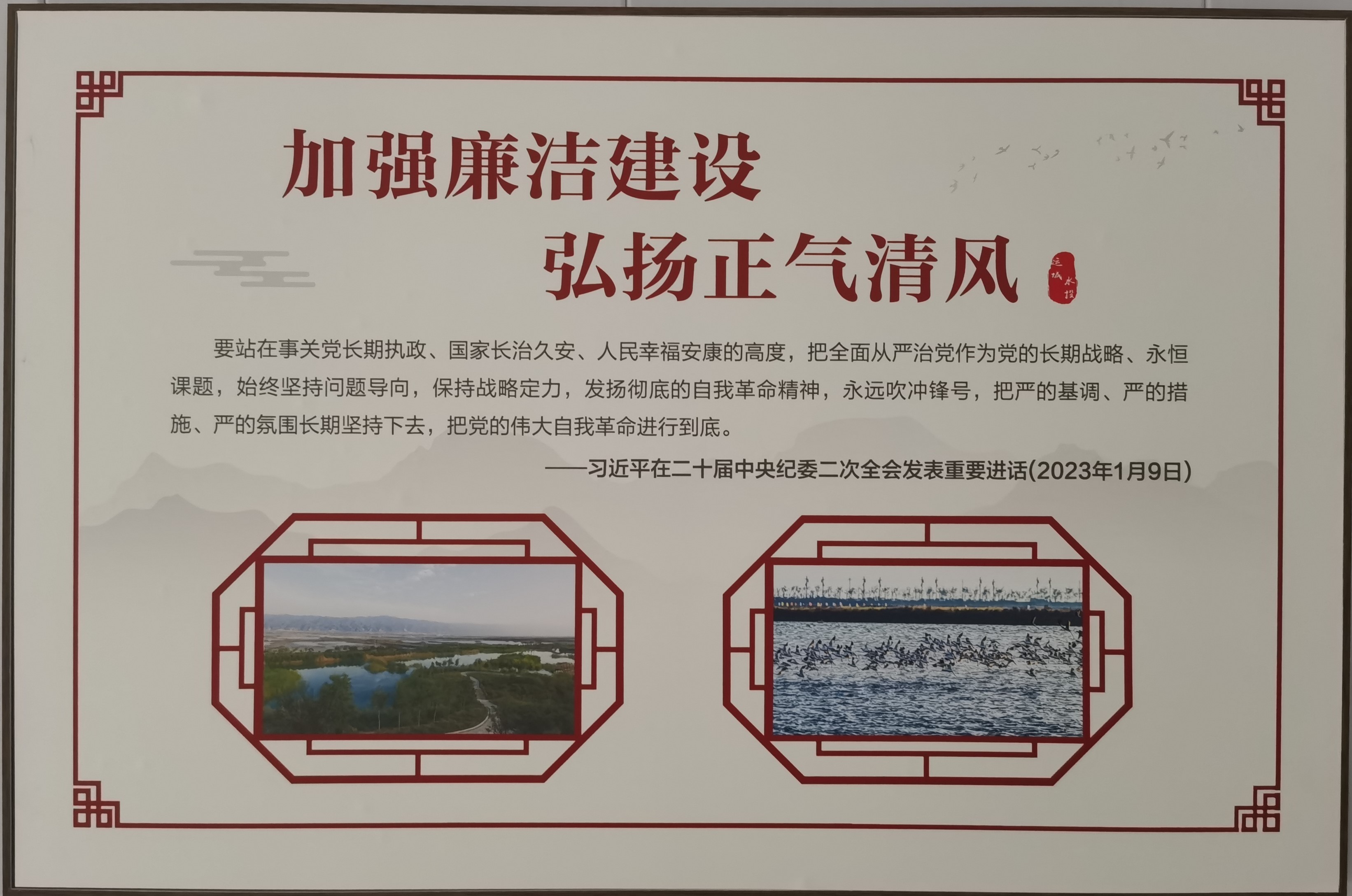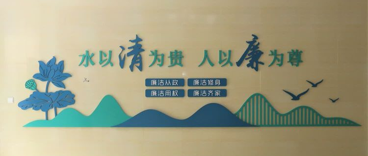 走進(jìn)公司辦公樓,映入眼前的一幅以“水以清為貴 人以廉為尊”為主題的廉政文化墻,讓人入眼入心,敬廉崇尚的山水風(fēng),簡(jiǎn)約凝練的文字,與構(gòu)建“清廉之風(fēng)”潤(rùn)“人水和諧”的良好生態(tài)發(fā)展相融合。同時(shí),通過(guò)廉政書(shū)畫(huà)室建設(shè)、清廉習(xí)語(yǔ)版面、廉政形象墻、水生態(tài)治理修復(fù)成效版面等多角度多層次厚植了廉政理念,夯實(shí)了廉政根基,營(yíng)造了學(xué)廉敬廉的濃厚氛圍。