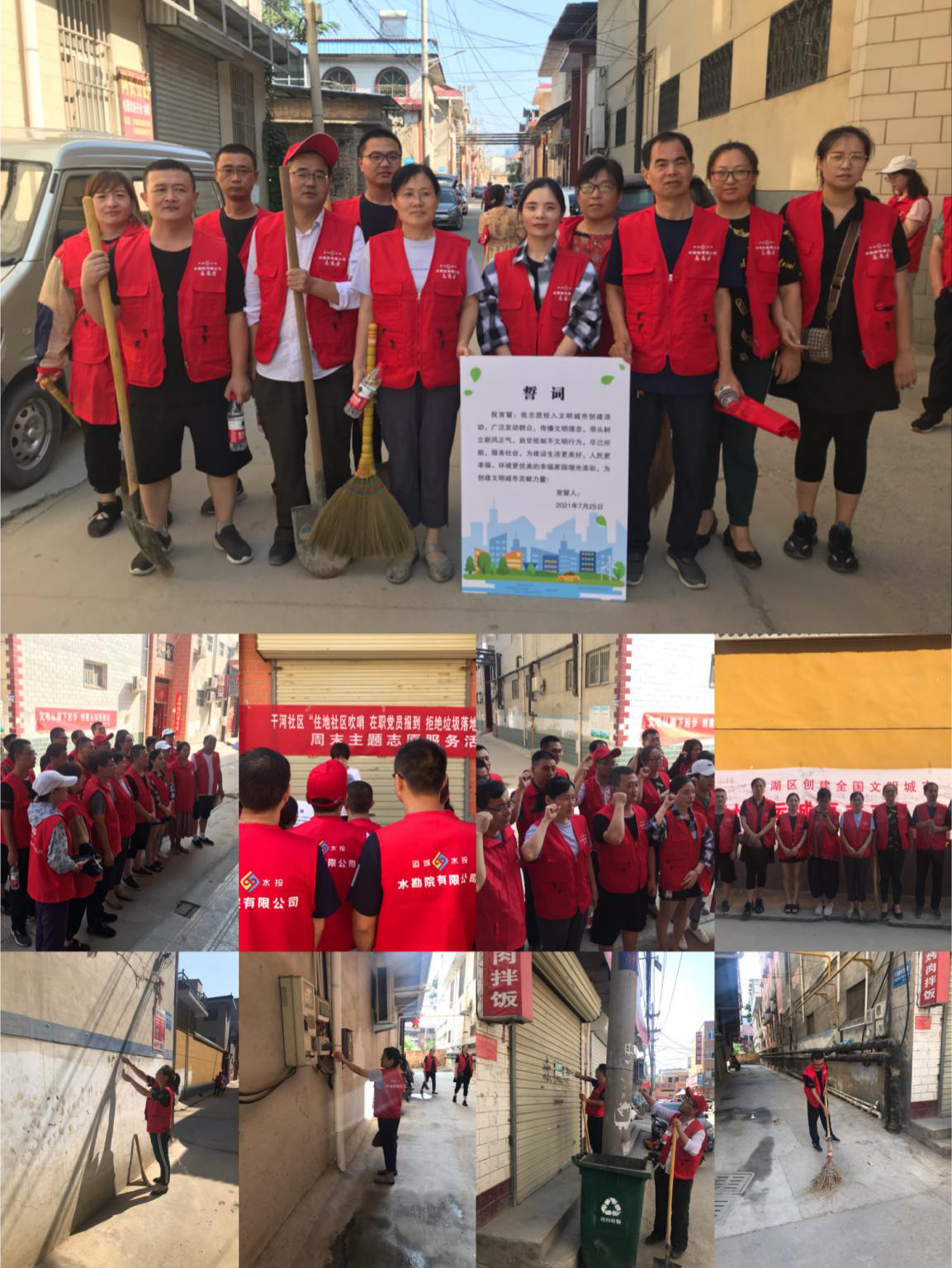 會前,為進一步深化公司黨史學習教育活動工作,推動“我為群眾辦實事”實踐活動走深走實,按照《運城市“社區(qū)吹哨、黨員報道”專項行動方案》工作要求,第四黨支部利用節(jié)假日(周日)組織黨員赴干河社區(qū)開展“住地社區(qū)吹哨、在職黨員報到、拒絕垃圾落地、共創(chuàng)文明城市”主題黨日志愿服務“+”活動。