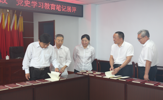 為進(jìn)一步提升黨史學(xué)習(xí)教育效果,持續(xù)推動學(xué)習(xí)教育走深走細(xì)走實(shí),激發(fā)我公司各黨支部黨員學(xué)習(xí)黨史的自覺性和積極性,9月6日,我公司黨委開展“以評促學(xué)、以展促改”黨史學(xué)習(xí)教育筆記本展評活動。此次筆記展評活動,由公司領(lǐng)導(dǎo)崔作銘、呂希汶、王望寬和各黨支部書記擔(dān)任評委,按照現(xiàn)場推選的方法開展評比活動。展評過程中,各位評委認(rèn)真翻閱,按照“四查四看”的方式,對照理論學(xué)習(xí)計(jì)劃要求,對我公司黨員黨史學(xué)習(xí)筆記進(jìn)行評比。評委挑選出10本優(yōu)秀筆記進(jìn)行展示,供其他黨員參考學(xué)習(xí)和借鑒,并對今后的理論學(xué)習(xí)提出要求。