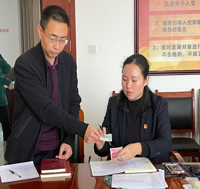 在主題黨日上,黨員集中繳納了本月黨費(fèi),并在支部黨員大會記錄本和“三晉先鋒”軟件上簽到。