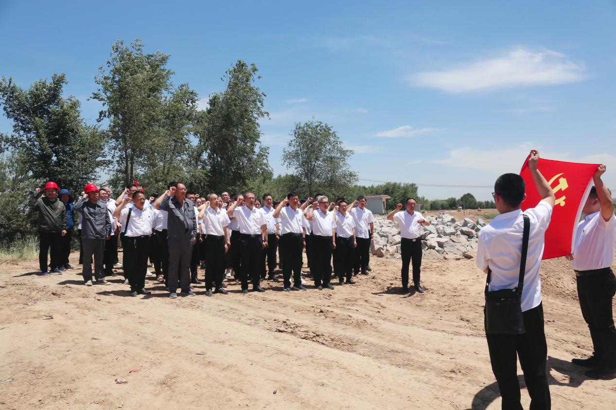 在熱火朝天的工地現(xiàn)場(chǎng),王望寬同志帶領(lǐng)大家重溫了入黨誓詞,鼓舞振奮了士氣,激勵(lì)了大家在本職崗位上建功立業(yè)的決心和信心,也切實(shí)體驗(yàn)了高溫下項(xiàng)目一線建設(shè)者的艱辛。