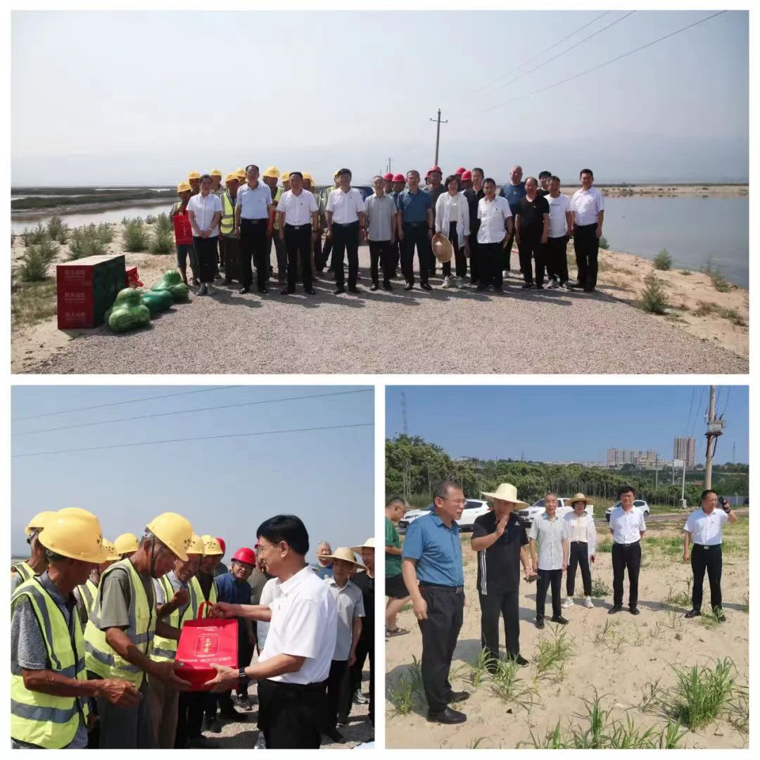 隨后,公司領(lǐng)導(dǎo)一行人來(lái)到鹽湖項(xiàng)目11號(hào)堤埝施工現(xiàn)場(chǎng),慰問(wèn)在高溫酷暑下堅(jiān)持奮戰(zhàn)在一線的工人,并為他們送去防暑降溫慰問(wèn)品。同時(shí),深入鹽湖堤埝二號(hào)灘和19號(hào)路,詳細(xì)了解灘面護(hù)坡綠化情況,坡面綠草茵茵,不同種類植物長(zhǎng)勢(shì)喜人;現(xiàn)場(chǎng)查看了傾斜電桿更換和扶正處理后情況,一定程度上消除了安全隱患,確保周邊居民和鹽池防汛調(diào)水用電安全,同時(shí)也起到了美化環(huán)境效果。