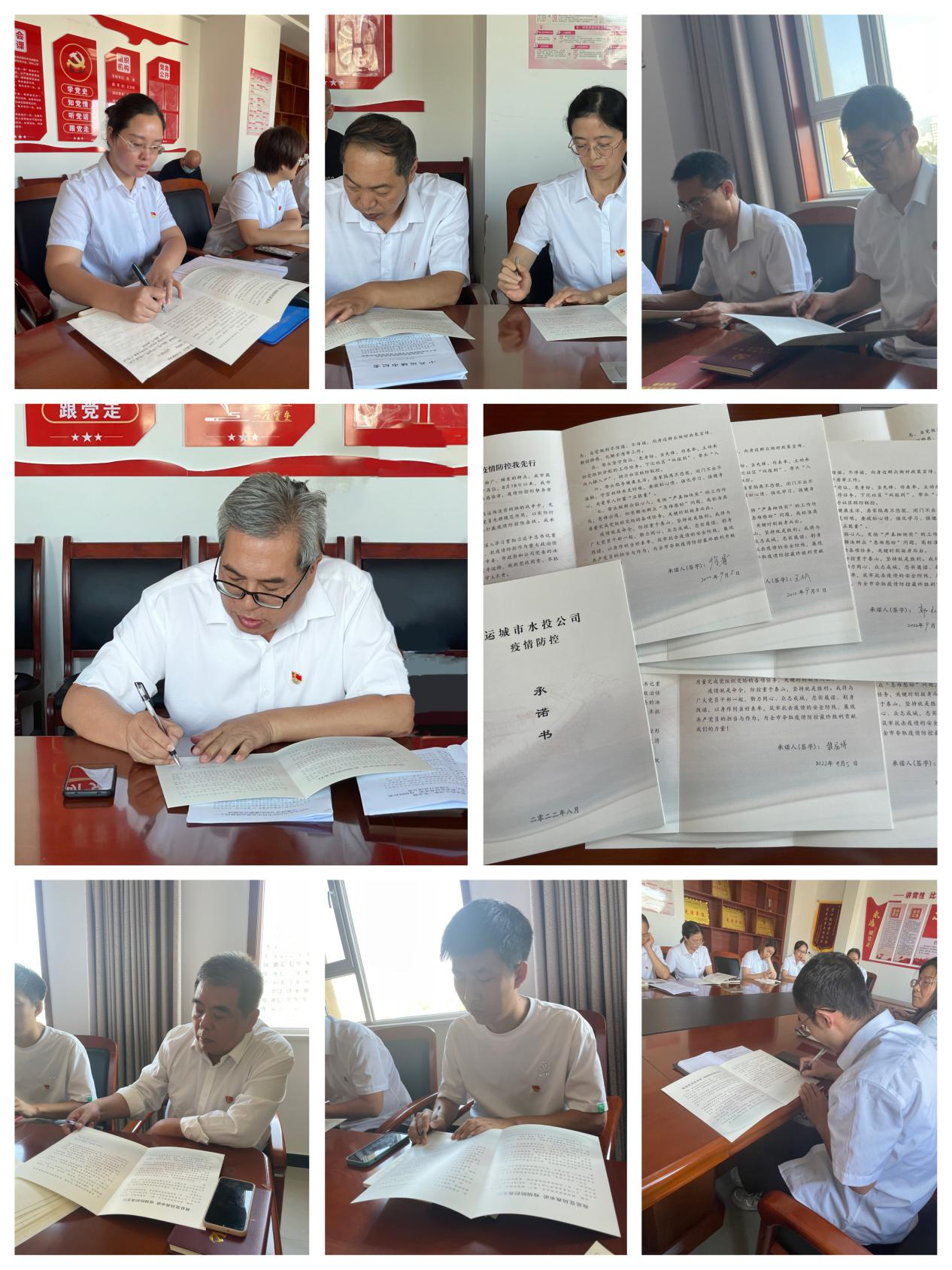最后,針對近期國內(nèi)疫情呈現(xiàn)多點(diǎn)散發(fā)的情況,支部開展“我是黨員我承諾 疫情防控我先行”活動(dòng),以簽訂黨員《承諾書》的方式,通過莊嚴(yán)承諾積極應(yīng)對疫情,將黨員干部的心凝聚在一起,共繪抗“疫”同心圓,匯聚保證城市平穩(wěn)運(yùn)行、群防群控戰(zhàn)勝疫情的磅礴力量。