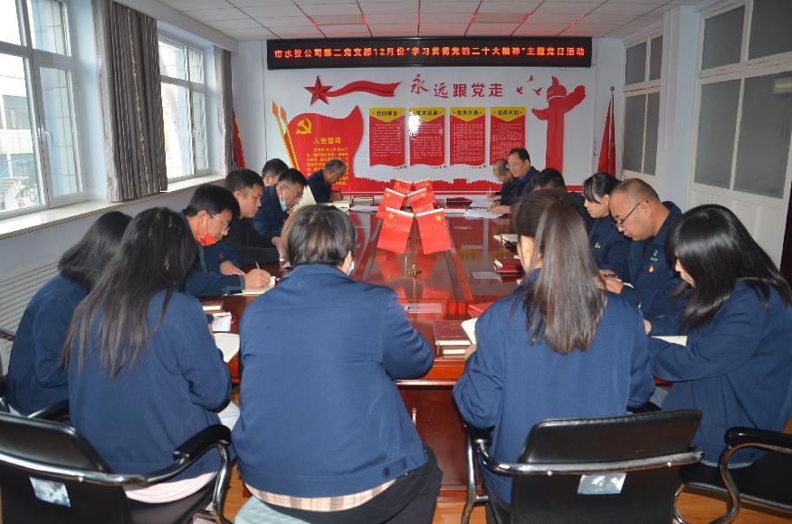 按照市水投公司黨委統(tǒng)一部署要求,第二黨支部于2022年12月5日下午組織全體黨員、積極分子開展了“學習貫徹黨的二十大精神”主題黨日活動。