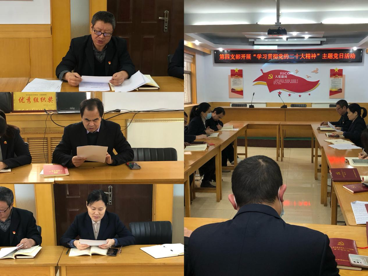 按照市委組織部《關(guān)于認(rèn)真開展2022年12月主題黨日活動(dòng)的通知》及公司黨委要求,并結(jié)合支部工作安排,第四支部于12月5日開展“學(xué)習(xí)貫徹黨的二十大精神”主題黨日活動(dòng)。現(xiàn)將情況匯報(bào)如下: