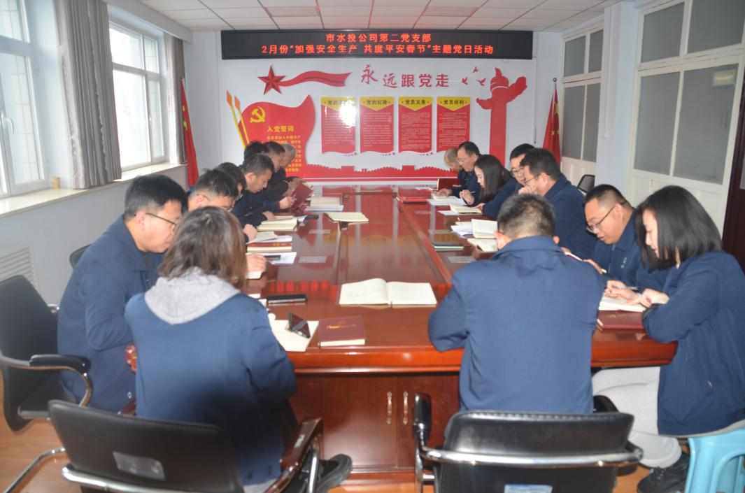按照市水投公司黨委統(tǒng)一部署要求,第二黨支部于2024年2月5日下午組織全體黨員、積極分子開展了“加強安全生產 共度安全春節(jié)”主題黨日活動,會議由支部書記吳爭兵主持。