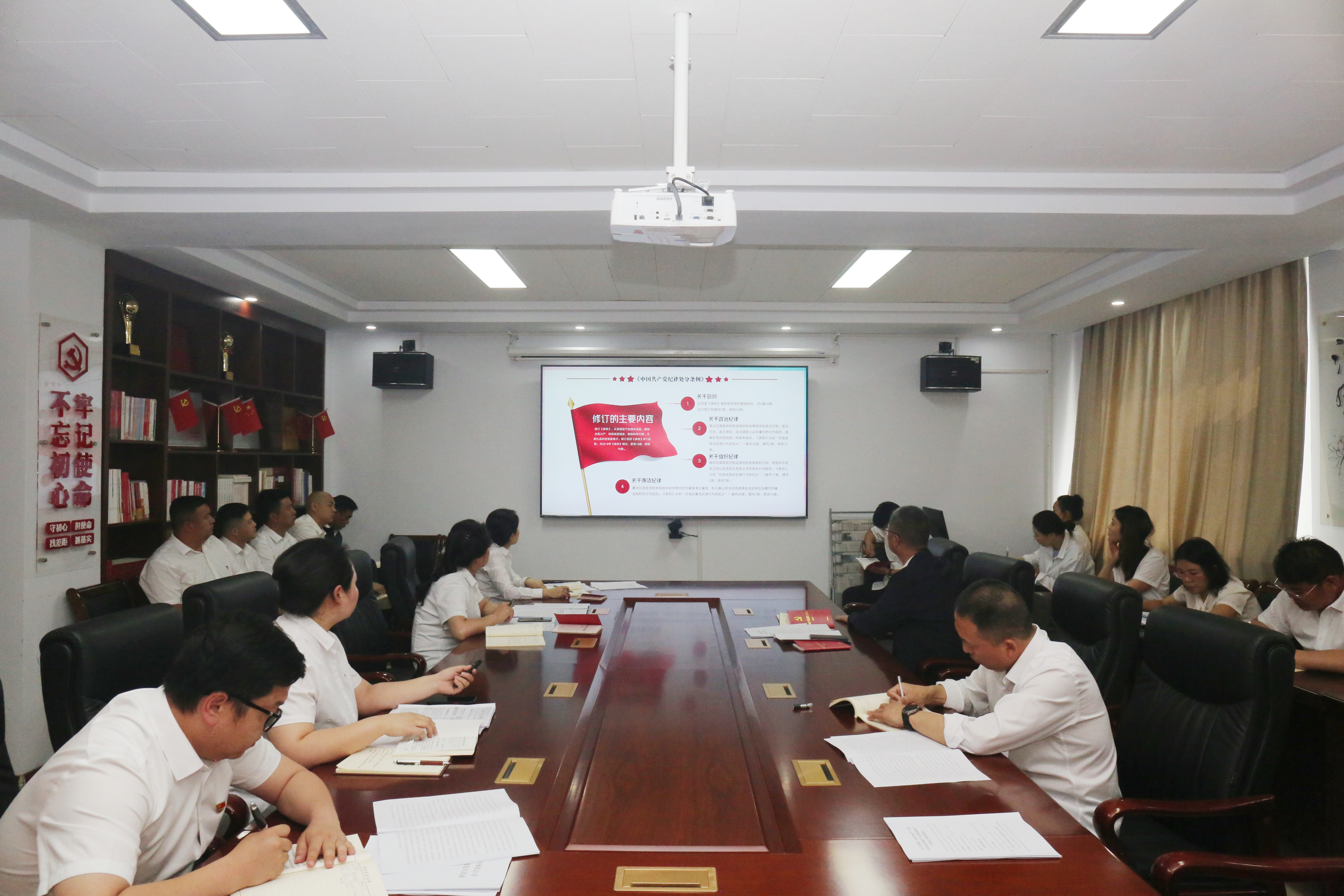 為扎實推進(jìn)黨紀(jì)學(xué)習(xí)教育走深走實,進(jìn)一步引導(dǎo)全體黨員干部樹牢責(zé)任意識、底線意識、紀(jì)律意識,組織委員胡凱菲圍繞《中國共產(chǎn)黨紀(jì)律處分條例》修訂的重要意義、新修訂的主要內(nèi)容以及如何抓好《條例》的貫徹執(zhí)行,理論聯(lián)系實際進(jìn)行授課,帶領(lǐng)參會人員重點對《條例》中新增的、平時容易忽略的、同志們可能存在認(rèn)識誤區(qū)等違紀(jì)行為進(jìn)行重點學(xué)習(xí),引導(dǎo)黨員干部不斷強(qiáng)化紀(jì)律意識和規(guī)矩意識,嚴(yán)格規(guī)范“八小時”以外言行舉止,自覺抵制不良風(fēng)氣,從源頭上筑牢遠(yuǎn)離腐敗的思想防線。