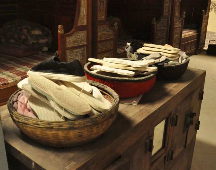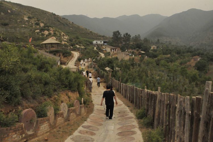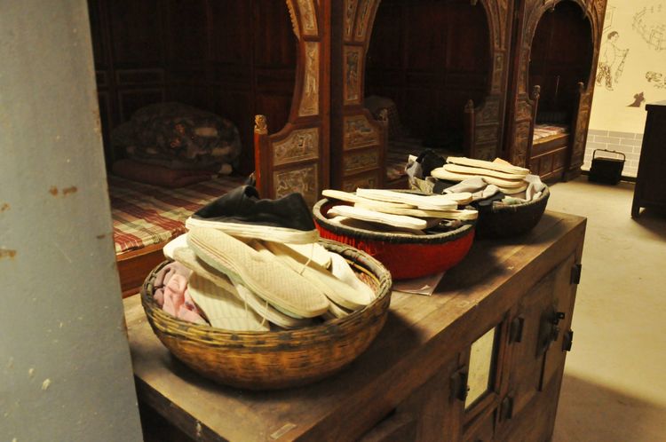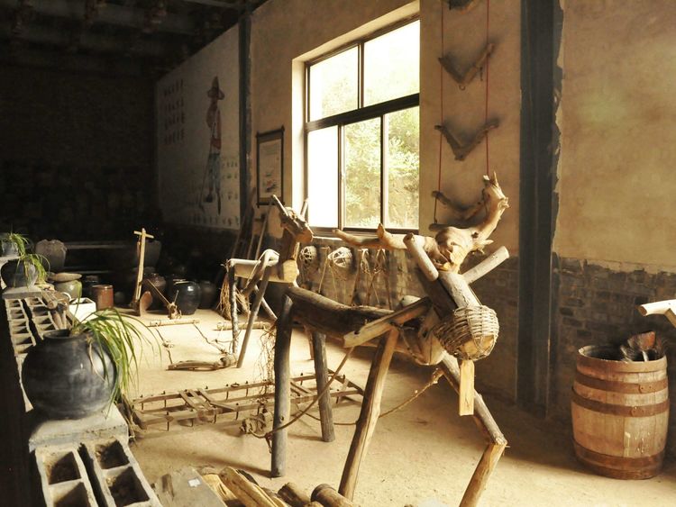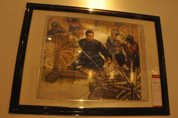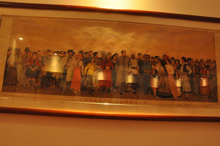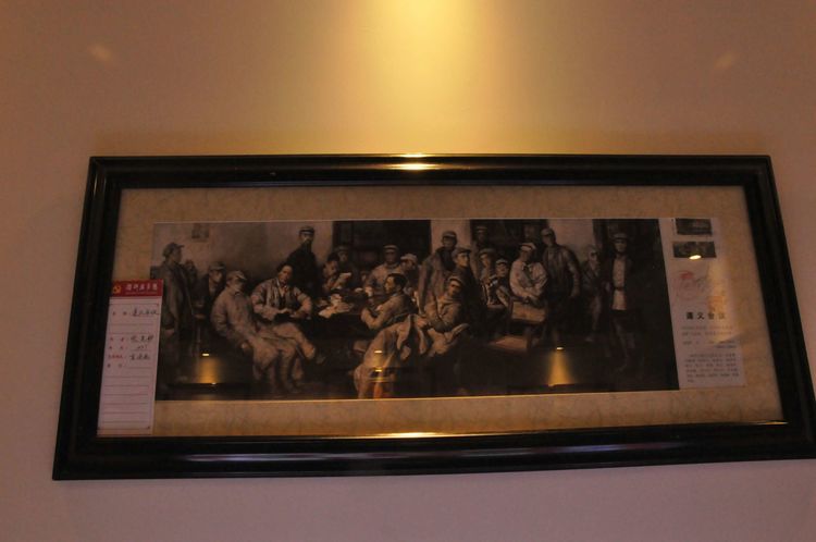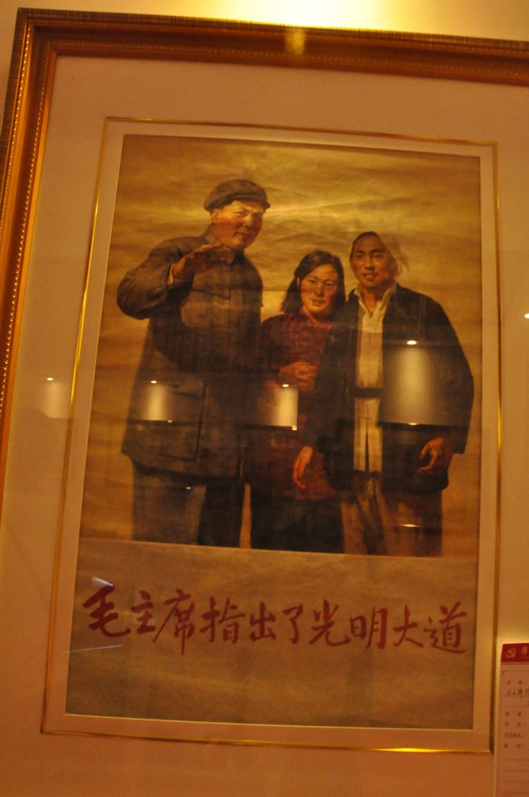 沿著山坡繼續(xù)往上,一座寬敞明亮的二層大展廳,以傳統(tǒng)的手工制作,農(nóng)耕家俱和紡織流程為主的實物展覽,以此教育宣揚,不忘初心,感恩社會,感恩父輩的孝道文化。好在天氣不十分熱,立陡的山坡,讓每個人爬得氣喘噓噓。即將爬到山頂,一座紅色教育基地,《信仰與夢想》展廳,進入了人們的視線。踏入展廳大門,正面牆上懸掛著由左向右排列的,馬克思,恩格斯,列寧,斯大林,毛澤東五位導(dǎo)師和領(lǐng)袖畫像,下面是毛主席的《為人民服務(wù)》五個大字。右面山牆上是巨幅萬里長城國畫和鮮艷的中國共產(chǎn)黨黨旗和入黨誓詞。左面牆上是一幅《南湖起航》油畫。