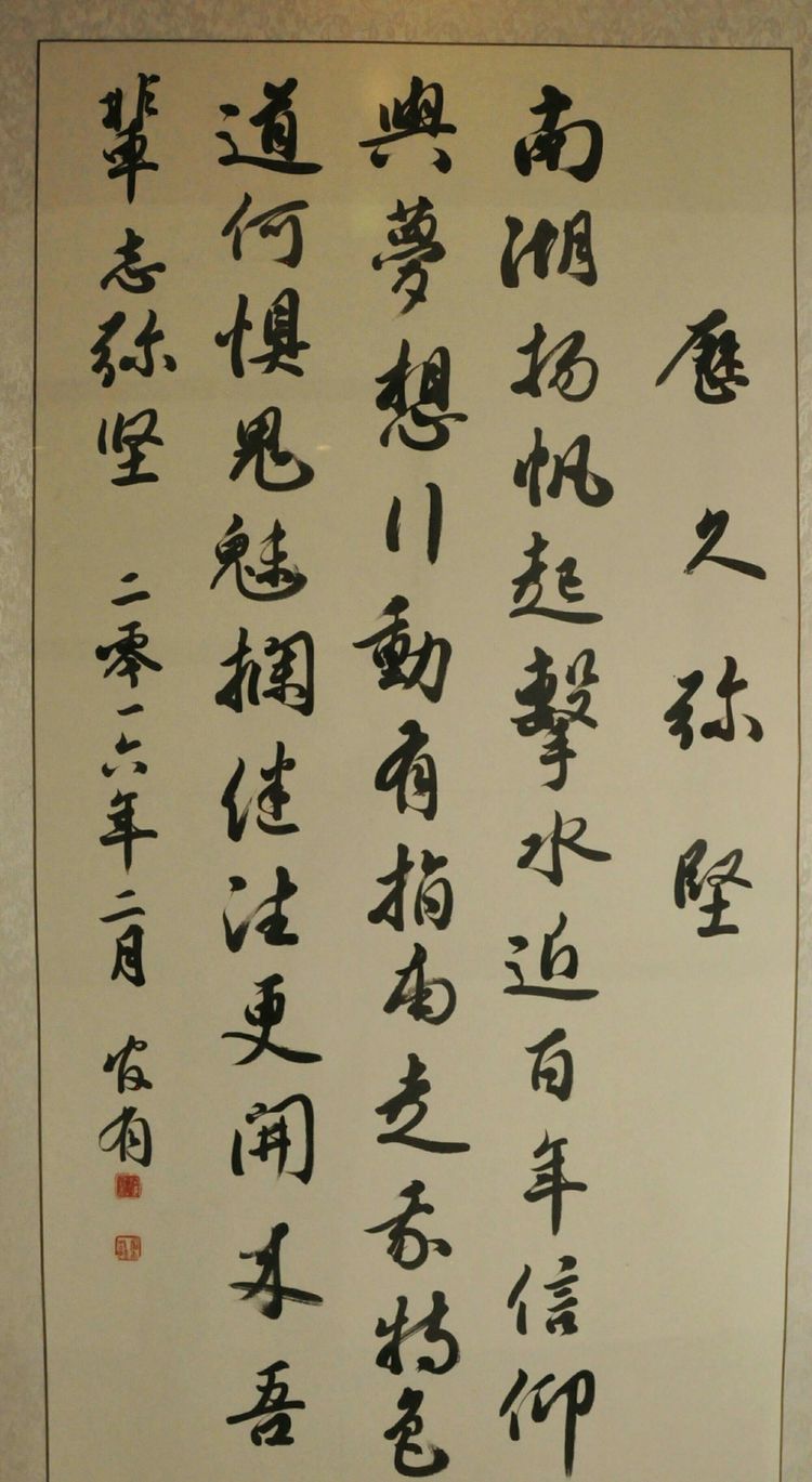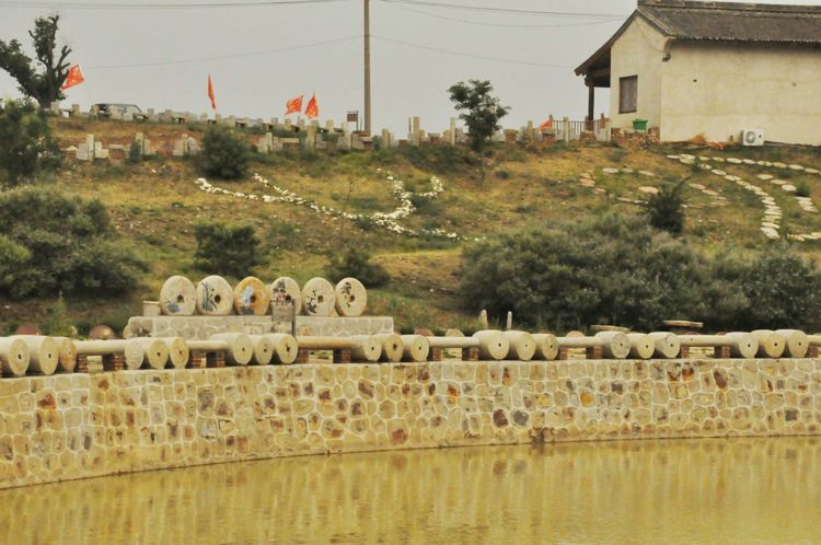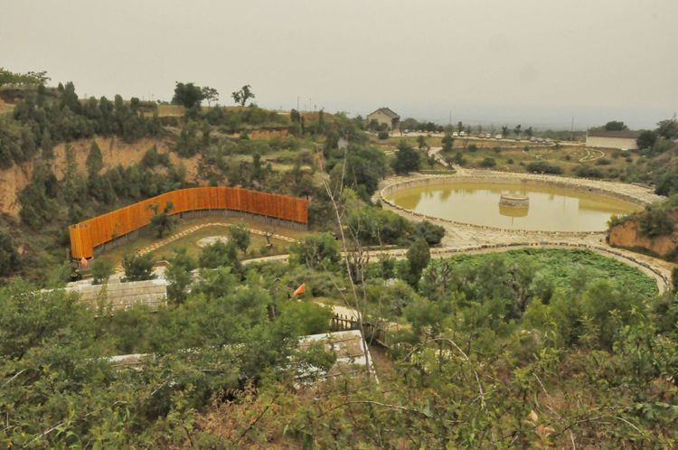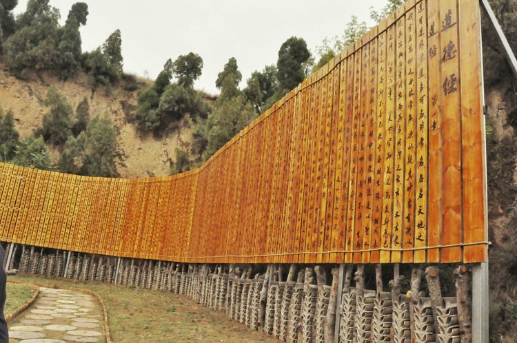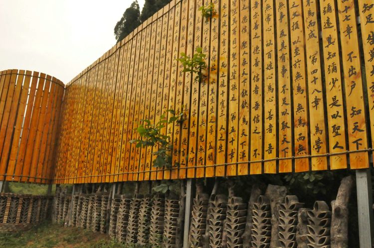 夏日,雨后的清晨,微風(fēng)拂面,清新涼爽,參加活動的一行人走在彎曲的山道上。山底的映山園形蓄水池與山腰的半園形碧綠的荷花池遙遙相對,形成了日月相映的自然景觀。繞過日月池,有一塊山坳地,緊靠山崖,由數(shù)百塊長條木板豎直排列,正楷書寫,組成了老子《道德經(jīng)》的長幅作品。很有氣勢。再往上爬,就是《修福第》的〈三益書院〉,兩旁刻有傳統(tǒng)的長幅對聯(lián)。書院內(nèi)樹木花草叢中座落著一座二層教學(xué)研究校舍,旁邊有食堂等建筑。