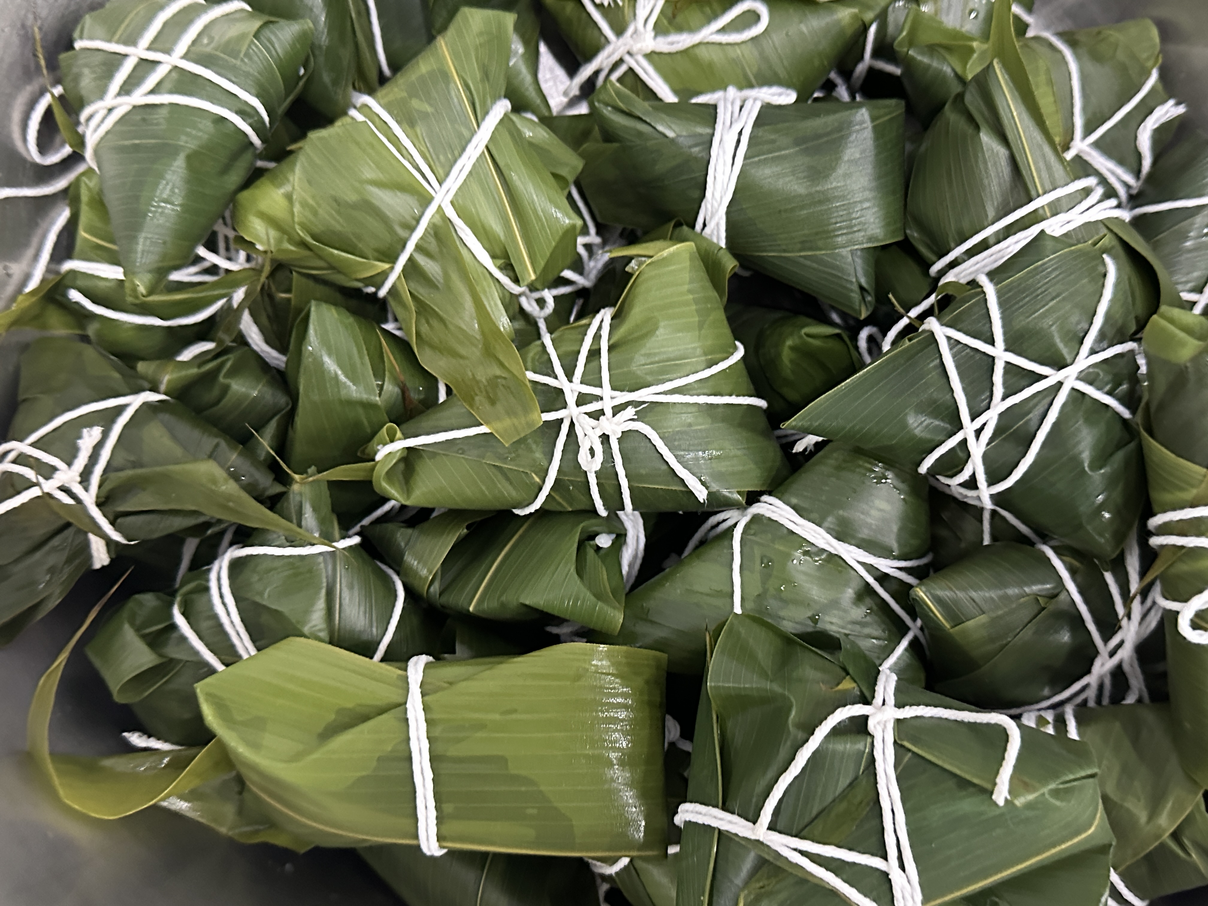 活動(dòng)現(xiàn)場(chǎng)歡聲笑語、粽香四溢。工作人員將提前泡好的糯米、粽葉、蜜棗等材料整齊地?cái)[在桌子上,大家圍在一起,紛紛拿出看家本領(lǐng),從折粽葉、裝糯米,到放餡料、裹扎繩,大家交流切磋、互相學(xué)習(xí),既有分工,又有合作。不一會(huì)兒,清香的粽葉,晶瑩的糯米,變成了一個(gè)個(gè)精致飽滿的粽子?;顒?dòng)現(xiàn)場(chǎng),大家相互學(xué)習(xí),互相交流,共話端午習(xí)俗,感受濃濃的節(jié)日氣氛。