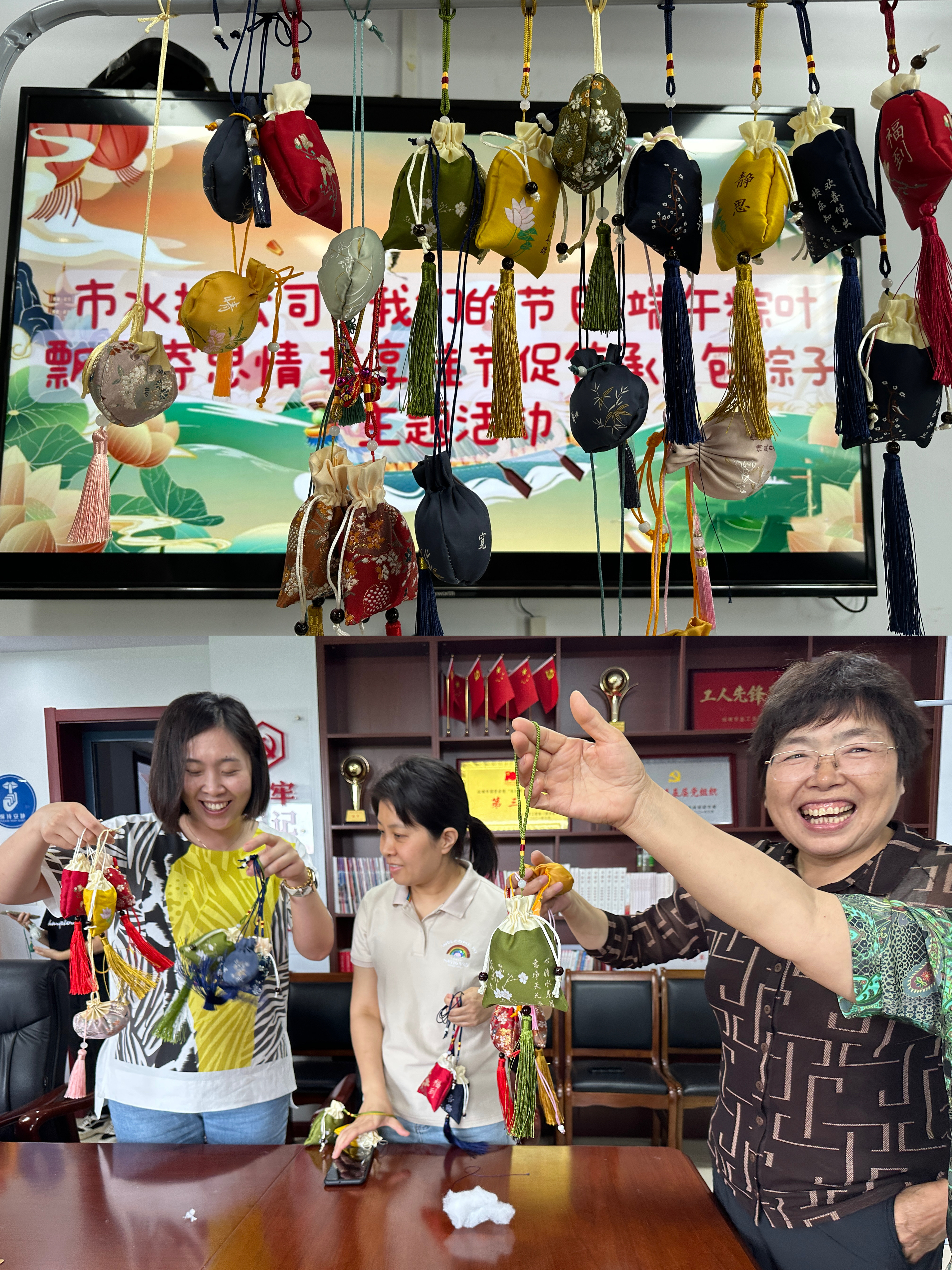 佩戴香囊也是端午節(jié)的習(xí)俗之一,為了驅(qū)除邪瘟,保持健康,員工們一針一線縫制出了實(shí)用又美觀的的艾草香囊。