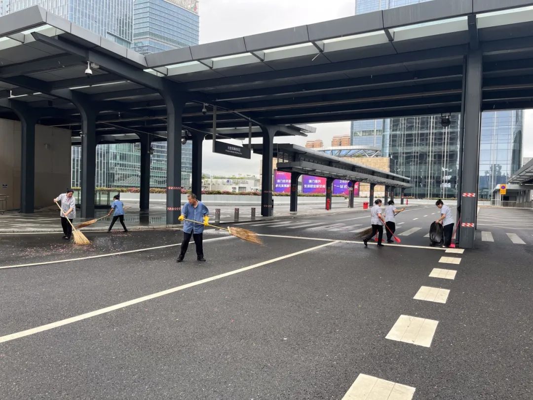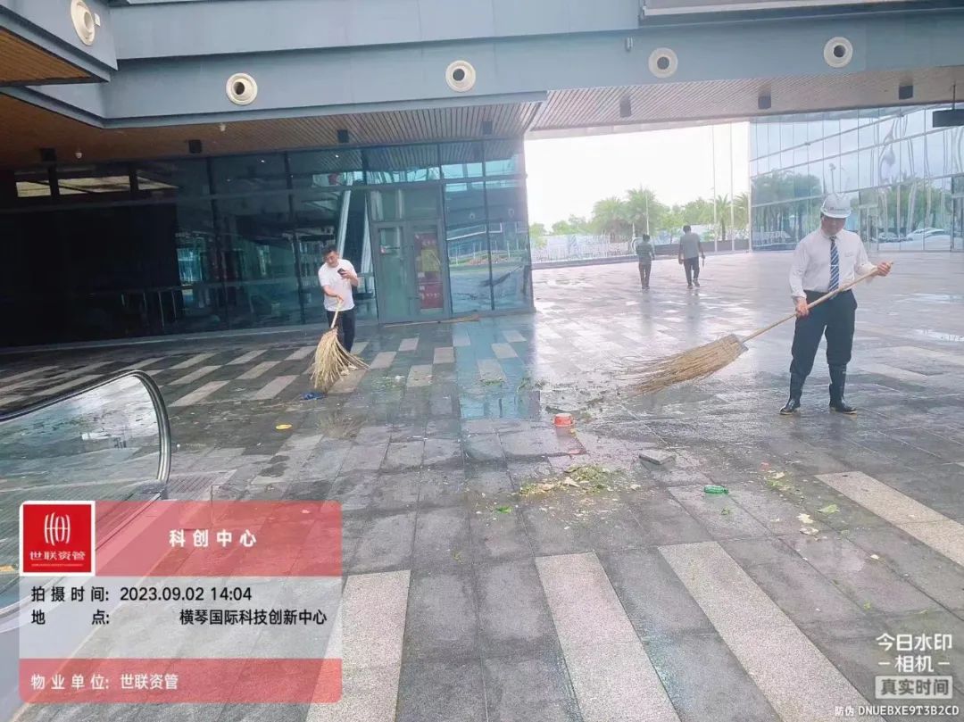 第一時間對園區(qū)環(huán)境進行清障復原,完成園區(qū)所有枯樹樹葉清理、樹木扶正,樹撐檢查加固;完成園區(qū)公共垃圾桶、煙灰柱、地毯復原工作;檢查受災情況并進行修復,檢查設備機房、電梯是否正常運行等,確保企業(yè)可正常辦公。其中橫琴國際科創(chuàng)中心園區(qū)應急避難場所本次接待人員約1500人次,產生生活垃圾約3噸,人員撤離后已及時清理。