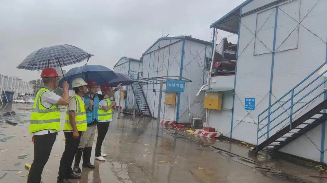 大橫琴置業(yè)公司所轄橫琴科學城項目在接到防臺風應急響應降為三級的通知后,第一時間組織臺風后的復工復產安全大檢查,對工人臨建生活區(qū)、施工現(xiàn)場辦公區(qū)、安全防護設施、臨時用電、施工設備、加工場地等進行了全面安全排查,做好了維修安排,為快速復工復產掃清障礙。截至目前,橫琴科學城一期、二期一標段已全面復工,三期二標段實現(xiàn)局部復工。