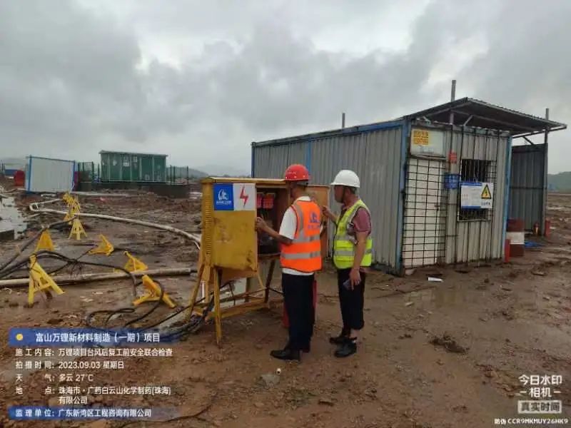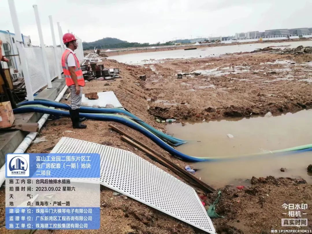 在斗門大橫琴5.0產業(yè)新空間萬鋰新材料(一期)項目現(xiàn)場,開展了臺風后復工復產安全大檢查,現(xiàn)場組織排水、圍擋修復各項工作。