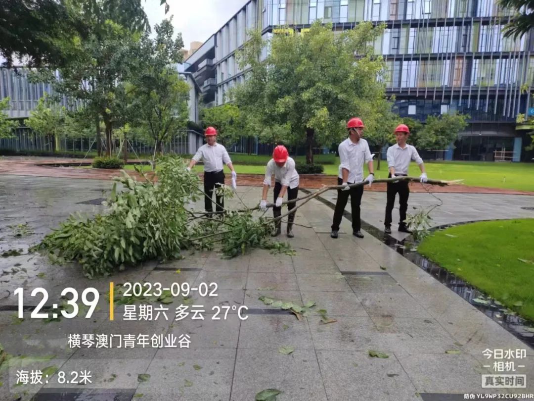 大橫琴琴建公司第一時間組織人員開展搶險工作。包括對建筑物進行全面檢查,確保建筑物結構安全。同時,集中力量對各項目受損樹木進行修復和清理,利用工具和機械設備積極清理影響道路、橋梁正常通行的傾倒樹木和雜物,針對重點區(qū)域迅速制定方案,盡快恢復正常的生產生活秩序。