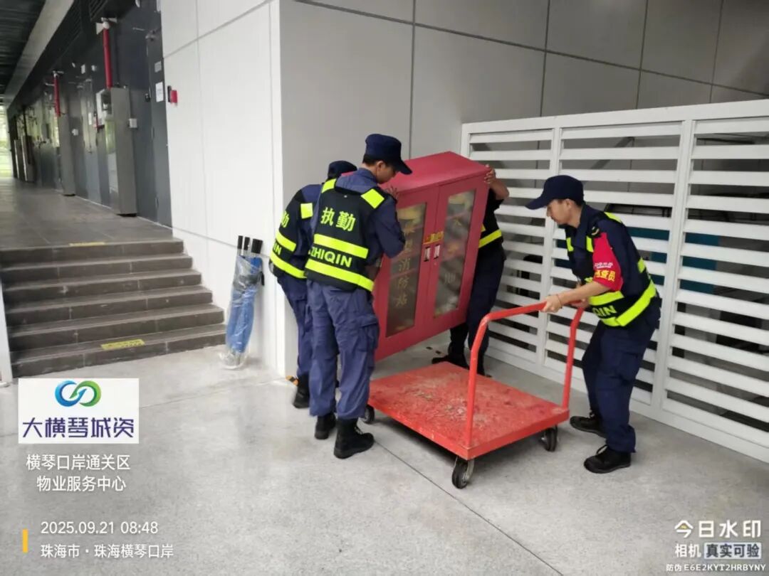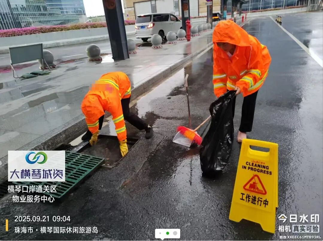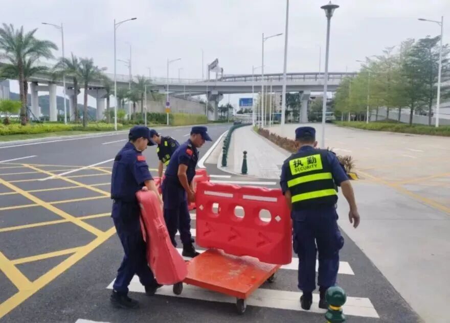 在橫琴口岸區(qū)域,提前排查200多個(gè)集水井,調(diào)集230個(gè)緊固件加固門窗,近3000條沙袋、近100個(gè)防洪擋板、11臺(tái)水泵等應(yīng)對(duì)福臨道、地庫(kù)36處接駁口、負(fù)二層下沉庭院、U行車道等重點(diǎn)區(qū)域強(qiáng)排和封堵需要。同時(shí)對(duì)通關(guān)區(qū)域的100余扇玻璃門進(jìn)行加固,在易水浸區(qū)域放置沙袋、擋板。同時(shí),全面清理雨水井、排水溝渠,確保排水暢通。
