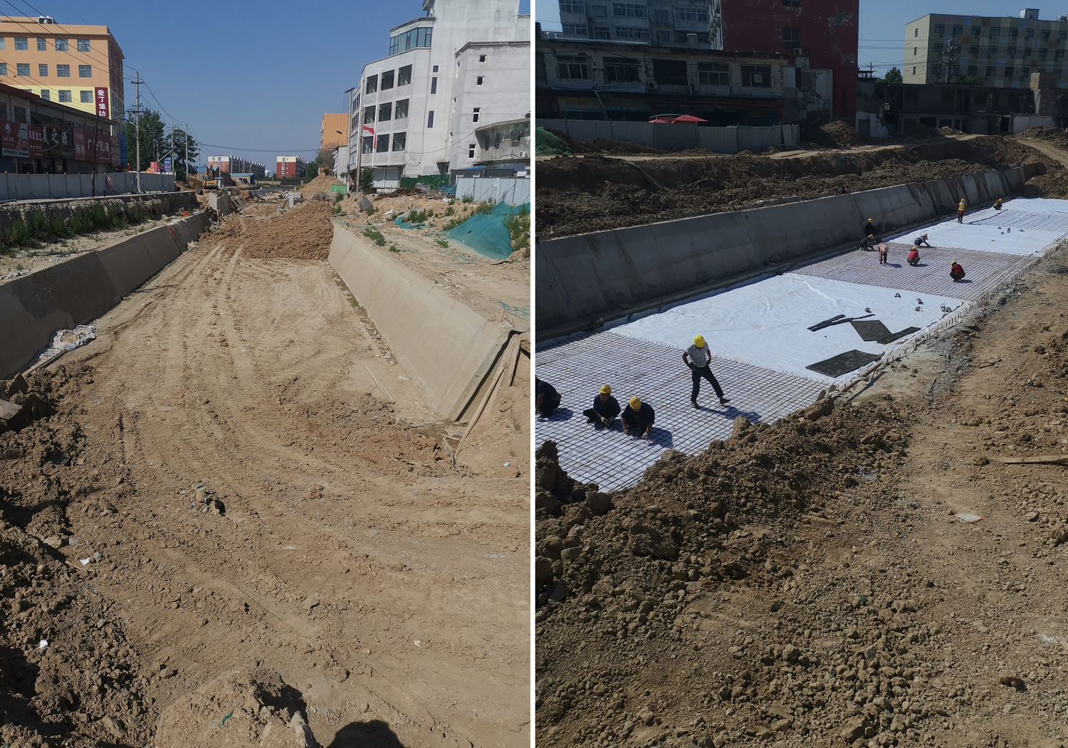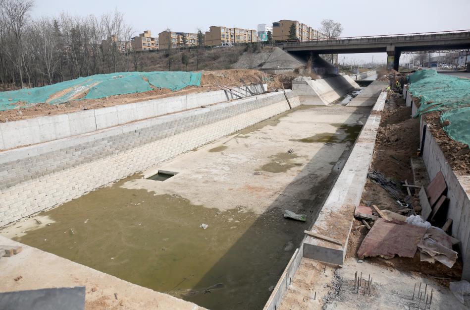 工程批復(fù)總投資4.8億元,批復(fù)工程主要建設(shè)內(nèi)容:渠道疏浚5 km;新建和改造兩岸堤防10 km;新建平板橋14座,人行拱橋3座;新建和改造截污管線4.02km;新建景觀鋼壩閘3座;渠道兩側(cè)綠化8萬m²;新建水循環(huán)泵站1座,埋設(shè)壓力管道4.8km。主要功能是泄洪、截污及景觀。2019年12月項目開工建設(shè),工期兩年。