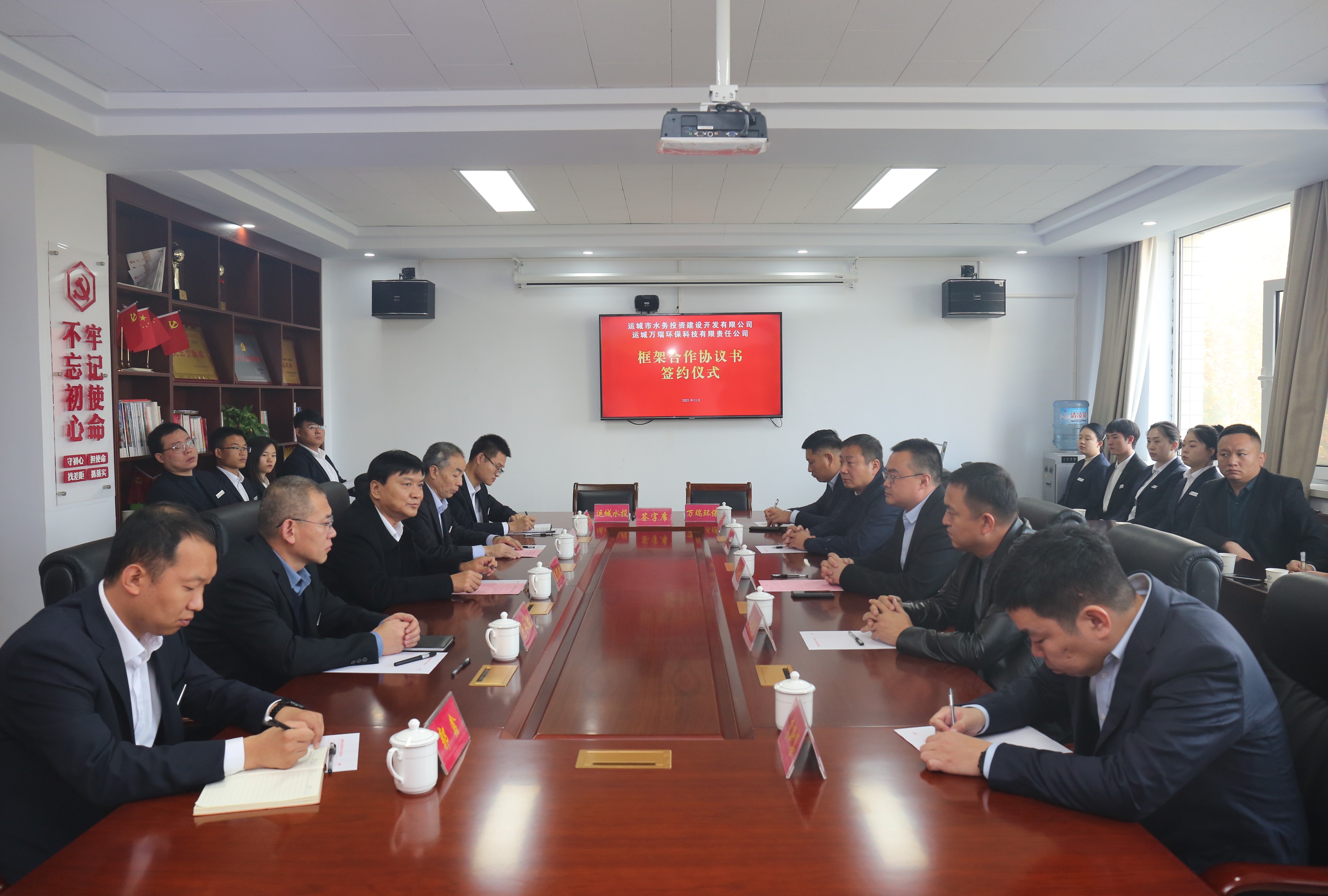 11月5日,運(yùn)城市水務(wù)投資建設(shè)開發(fā)有限公司(以下簡稱市水投公司)與運(yùn)城萬瑞環(huán)??萍加邢挢?zé)任公司(以下簡稱萬瑞環(huán)保公司)框架合作協(xié)議簽約儀式,在市水投公司隆重舉行。