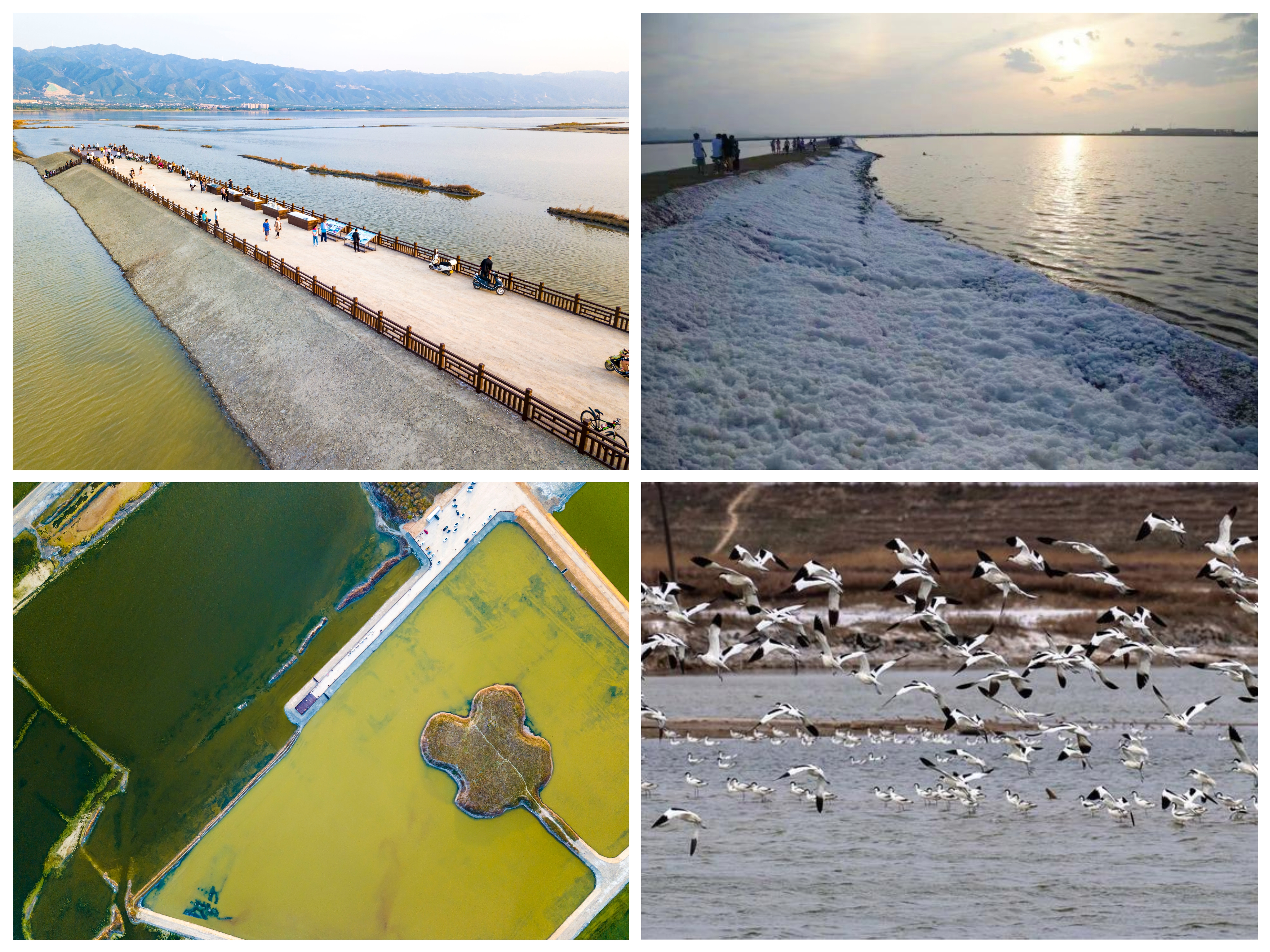2021年以來,由我公司負(fù)責(zé)實(shí)施的鹽湖堤埝除險加固及生態(tài)修復(fù)工程,經(jīng)過對原運(yùn)硝路改造、堤埝平整加固、畦田清淤、江道疏浚,完成堤埝整治98千米、環(huán)湖綠道13.14千米、雜草清理41萬平方米、草皮護(hù)坡10萬平方米、淤面清理14萬立方米;實(shí)施北坡綠化、岸帶綠化、荒灘綠化等工程,最大限度地保留了鹽湖的自然風(fēng)貌,厚植了鹽湖的生態(tài)底色。“退鹽還湖”兩年多來,鹽湖已經(jīng)逐步從礦區(qū)、工業(yè)區(qū)變?yōu)樯鷳B(tài)保護(hù)區(qū)、旅游打卡地,為鹽湖長遠(yuǎn)可持續(xù)發(fā)展預(yù)留了資源空間。