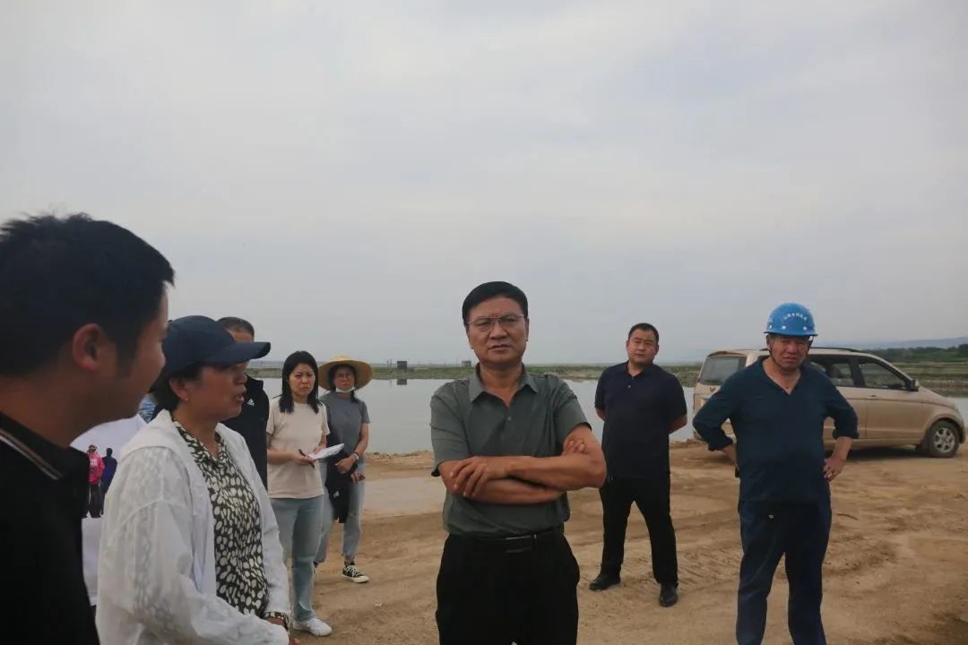 沿著七彩環(huán)湖綠道一路向前,過(guò)小李村北后,是原鹽化七場(chǎng)運(yùn)硝路段,道路路基及兩邊基礎(chǔ)設(shè)施等工程已基本完工。驅(qū)車(chē)行駛至8號(hào)路南段,因雨后未修復(fù)的堤埝松軟,路面坑洼有積水難行,調(diào)研組一行人徒步3公里到南外江道疏浚施工現(xiàn)場(chǎng),邊走邊實(shí)地察看項(xiàng)目建設(shè)情況,結(jié)合堤埝江道原貌地形,崔作銘與現(xiàn)場(chǎng)技術(shù)人員反復(fù)論證施工實(shí)施方案,他指出首先要把綠道路基按標(biāo)準(zhǔn)要求夯實(shí)鋪牢,堤埝邊坡修復(fù)整齊,清理打撈污染垃圾,加快疏浚江道,保證鹽湖內(nèi)循環(huán)暢通無(wú)阻恢復(fù)湖泊生態(tài)系統(tǒng)自我修復(fù)功能;其次要科學(xué)精準(zhǔn)系統(tǒng)實(shí)施,為鹽湖的后續(xù)建設(shè)規(guī)劃和要素做好持續(xù)合理的需求保障。