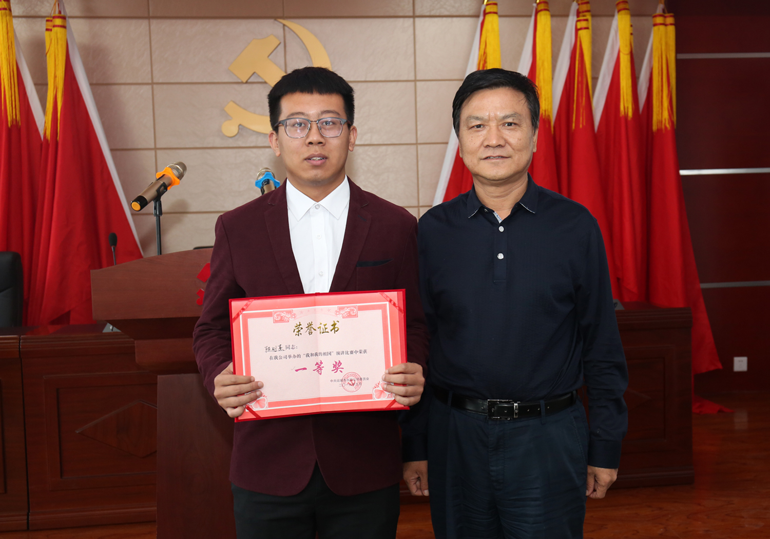 來自公司及各下屬單位的六名選手,圍繞“我和我的祖國”這一鮮明主題,用飽滿熱情的態(tài)度、富有激情的聲音,為大家呈現(xiàn)了一場精妙絕倫的視聽盛宴。選手們從愛崗敬業(yè)、增強自信、放飛夢想等方面謳歌贊美我們偉大的祖國,各有側(cè)重、立場獨到,妙語連珠、聲情并茂、繪聲繪色的演講風(fēng)格,不僅表明了水投人對工作的熱忱,更表達(dá)了對祖國母親的深情與感恩,現(xiàn)場的熱情被歡樂和榮耀一次次點燃。本次演講比賽采取評委現(xiàn)場打分、現(xiàn)場宣布結(jié)果的形式,按照演講內(nèi)容、演講技巧、演講效果等進(jìn)行綜合評分。經(jīng)過激烈的角逐,最終評出一等獎一名,二等獎兩名,優(yōu)秀獎三名,公司領(lǐng)導(dǎo)班子成員向選手們頒發(fā)了獲獎證書。