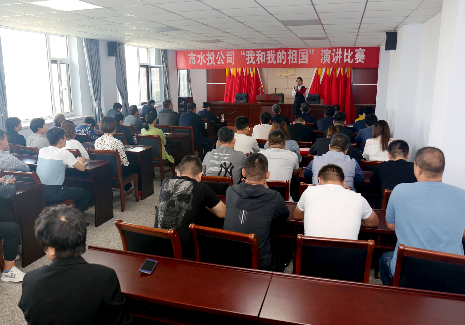 為了熱烈慶祝中華人民共和國成立70周年,扎實開展“不忘初心、牢記使命”主題教育活動,9月23日上午,市水投公司在六樓會議室舉辦“我和我的祖國”演講比賽活動。市水投公司及各下屬單位優(yōu)秀代表參加了比賽,公司領(lǐng)導(dǎo)班子成員及各下屬單位班子成員觀看了比賽。