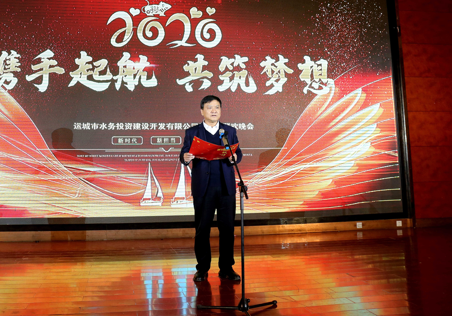 首先公司黨委書記、董事長(zhǎng)兼總經(jīng)理崔作銘致新年賀詞,代表公司班子感謝市國(guó)資委、山西建工集團(tuán)領(lǐng)導(dǎo)光臨晚會(huì),感謝所有員工對(duì)公司發(fā)展的辛勤奮斗,并向全體人員致以節(jié)日的問(wèn)候和祝福。回顧2019,水投公司成績(jī)顯著;展望2020,還需篤定心志負(fù)重前行。他指出要以習(xí)近平新時(shí)代中國(guó)特色社會(huì)主義思想為指引,貫徹落實(shí)習(xí)總書記“三篇光輝文獻(xiàn)”精神,緊緊圍繞市委市政府水系項(xiàng)目建設(shè),不忘初心,牢記使命,以構(gòu)建生態(tài)水系,打造優(yōu)美環(huán)境,建設(shè)宜居城市,造福人民群眾的信念,只爭(zhēng)朝夕,不負(fù)韶華,積極推動(dòng)水系項(xiàng)目建設(shè)。